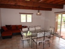 Maison 4 pièces 85 m2 sur 2 niveaux. Aménagement fonctionnel: entrée. Grand séjour/salle à manger avec poêle suédois, table pour les repas, TV et air-conditionné. Sortie sur la terrasse. 1 chambre 8 m2, mansardée avec 1 grand-lit (140 cm, longueur 190 cm), air-conditionné. 1 chambre 15 m2 avec 1 grand-lit (140 cm, longueur 190 cm), air-conditionné. Cuisine ouverte (4 plaques de cuisson, four, lave-vaisselle, four micro-ondes, congélateur, cafetière électrique). Douche, WC séparé, double vasque. Sous le toit: (escalier sans rampe) 1 chambre 20 m2, mansardée, ouverte hauteur plafond 166 - 185 cm avec 2 lits (90 cm). WC séparé. Chauffage. Sol en parquet. Terrasse 30 m2. Meubles de terrasse, barbecue électrique, chaises longues (4). A disposition: lave-linge, fer à repasser, lit bébé, bois (gratuit). Veuillez noter: maison non-fumeur. Maximum 1 animal/ chien autorisé.- Installations