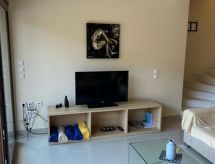 Belle villa confortable "Avra", de 3 étages, jumelée. Dans le quartier de Palaiokastro, à 17 km du centre de Heraklion, situation tranquille, ensoleillée, à 950 m de la mer, à 950 m de la plage. A usage privé: beau jardin sur plusieurs niveaux entretenu avec fleurs et arbres, piscine rectangulaire (15 m2, disponibilité saisonnière: 01.Avr. - 30.Nov.) avec marches intérieures. Infrastructures de la Maison: salle fitness. Place de parking près de la maison. Magasin d'alimentation 8 km, supermarché 8 km, restaurant 950 m, boulangerie 8 km, café 950 m, plage de graviers "Palaiokastro" 950 m. Terrain de golf (18 trous), centre équestre 23.8 km. Attractions à proximité: Minoan Palace of Knossos 17.8 km, Nikos Kazantzakis Museum 30.6 km, El Greco Museum 16.2 km, CRETAquarium Thalassokosmos 32.8 km, Archaeological Museum of Heraklion 16.9 km, Natural History Museum of Crete 14.9 km. Veuillez noter: voiture recommandée. Le propriétaire n'accepte pas les groupes de jeunes. La photo ne montre qu’un exemple de location de vacances.Interior