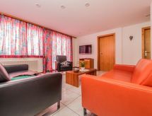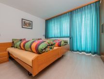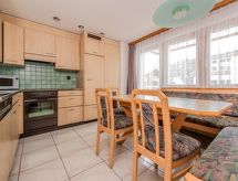 94 m2. Autres informations du fournisseur: Maison dans un endroit tranquille et central avec belle vue sur les montagnes. Appartement-non-fumeur. Appartement de 4 1/2 pièces (86 m2), 1er étage, l'appartement comporte 3 chambres à coucher double (avec 4 personnes 2 chambres, avec 2 personnes 1 chambre à coucher), salle de séjour/cuisine, douche/WC et bain/WC, w-lan; TV écran plat, lave-vaisselle, 3 balcons. Situation sud-est. Nouveau: Chauffage pour les bottines de ski. Taxe de séjour été (01.06. - 31.10.): CHF 7.- par adulte, CHF 3.50 par enfant (6 - 15.99 ans) par jour. Taxe de séjour hiver (01.11. - 31.05.): CHF 4.50 par adulte, CHF 2.25 par enfant (6 - 15.99 ans) par jour. Nettoyage final inclu. Linge de cuisine, de bain et de lit sont fourni et inclus. Lit d'enfant: CHF 7.-- par jour.- Activités à proximité