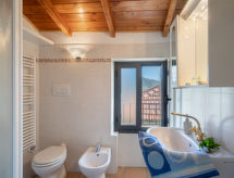 "Azzurro", apt 2 pièces 50 m2 au 1er étage. Clair, aménagement de bon goût: 1 chambre double. Grande cuisine/séjour (Poêle à gaz, 4 feux, grille-pain, bouilloire électrique, cafetière électrique) avec table pour les repas, 1 divan-lit (160 cm), TV (satellite). Douche/bidet/WC. Chauffage au gaz. Sol en pierres naturelles. Petit balcon, jardin. Meubles de terrasse, chaises longues (2). Belle vue panoramique sur les montagnes et la vallée. A disposition: lave-linge, fer à repasser, chaise haute pour enfant, lit bébé, sèche-cheveux. Internet (Connexion WIFI). 1 animal/ chien autorisé. CITRA:008064-AGR-0001- Installations