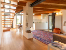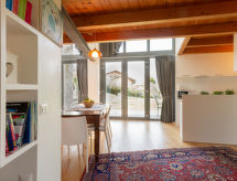 Maison jumelée moderne "Baila". Dans le quartier de Curcio, à 1 km du centre de Colico, à 38 km du centre de Lecco, à 65 km du centre de Como, dans un quartier résidentiel, à 2 km du lac. En commun: terrain 800 m2 (clôturé) avec champ, verger, place de parking (pour 3 voitures) près de la maison, parking public possible dans la rue. Magasins 1 km, gare ferroviaire "Colico" 1 km, plage de gazon 2 km. Marina 2 km, terrain de golf (18 trous) 35 km, ecole de surf 2 km. Attractions à proximité: Forte Montecchio Nord, Torri di Fontanedo, Abbazia di Piona, Mulino Maufet. Les domaines skiables de renommée sont facilement accessibles: Madesimo, Livigno. Les lacs connus sont facilement accessibles: Lago di Mezzola, Lago di Lugano. Région de randonnées: Monte Legnone, Monte di Rusico. Le propriétaire n'accepte pas les groupes de jeunes. Certaines parties de la maison sont fermées et inoccupées.Interior
