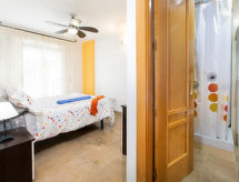 "Bajamar", apt 4 pièces 100 m2 au 3ème étage. Spacieux et clair, aménagement fonctionnel et confortable: séjour/salle à manger avec Télévision numérique. Sortie sur la terrasse. 1 chambre avec 1 lit (90 cm, longueur 190 cm). 1 chambre avec 1 grand-lit (190 cm, longueur 135 cm). 1 chambre avec 1 grand-lit (190 cm, longueur 135 cm). Grande cuisine (4 plaques vitrocéramiques, grille-pain, four micro-ondes, congélateur, cafetière électrique). Bain/WC, douche/WC. Pas de chauffage. Grande terrasse. Meubles de terrasse. Belle vue sur les montagnes. A disposition: lave-linge, fer à repasser, chaise haute pour enfant, lit bébé jusqu'à 3 ans, sèche-cheveux. Internet (Connexion WIFI, gratuit). Place de parking. VFT/GR/06164- Activités à proximité
