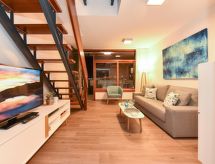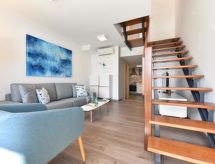 Apt "morea 1", 4 pièces pour 4 personnes, 90 m2 sur 2 niveaux, moderne et luxueux aménagement. Séjour/salle à manger avec TV (satellite). Non permis de fumer. Internet (Connexion WIFI). Chambre à coucher avec 1 lit double. Chambre à coucher avec 2 lits normaux. Cuisine avec four à 4 plaques, four micro-ondes, four, table pour les repas, coin repas, lave-vaisselle, réfrigérateur et congélateur. Douche/WC et WC séparés. Balcon, terrasse, meubles de terrasse. Autres fournitures: coffre-fort, chaise haute pour enfant, sèche-cheveux, fer à repasser, lave-linge. 2019/2401- Caractéristiques de l'hébergement