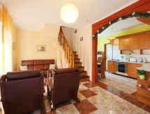 Kőröshegy à 3 km de Balatonföldvár: Maison individuelle accueillante "Beata", de 2 étages, rénovée en 2020. Dans la localité, à 3.5 km du lac. A usage privé: grand jardin (clôturé) avec pelouse et arbres, verger. Jardinet, barbecue (bac à sable). Infrastructures de la Maison: Connexion WIFI, lave-linge. Place de parking (pour 3 voitures) près de la maison. Magasin d'alimentation 1 km, supermarché 2.3 km, centre commercial 2.3 km, restaurant 1 km, café 2.5 km, arrêt de bus "Szántód" 2.3 km, gare ferroviaire "Szántód-Kőröshegy" 2.5 km, ferry-boat "Szántód-Tihany" 4.5 km, plage de gazon "Balatonföldvár" 3.4 km, centre thermal "Igal Thermal Bath" 36 km. Marina 3.8 km, ecole de voile 4 km, tennis 4.8 km, piste cyclable 2.5 km. Jeux pour enfants 3.4 km. Attractions à proximité: Kőröshegy Lavender Farm 2.6 km, Balatonföldvár Look-out Tower 5 km, Shipping History Exibition 5 km, Balaton Sound Festival 6.4 km. Veuillez noter: équipement pour bébés sur demande (inclus).Interior