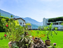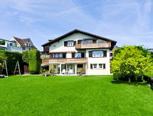 Studio 31 m2, au rez-de-chaussée. Aménagement fonctionnel et plaisant: 1 chambre 17 m2 avec 1 lit double et TV (satellite) (écran plat). Sortie sur le jardinet. Cuisine/séjour (four, lave-vaisselle, 4 plaques vitrocéramiques, four micro-ondes) avec table pour les repas. Douche/WC. Jardinet 8 m2, situation sud. Meubles de terrasse, jardin d'hiver. Partielle sur le lac, les montagnes et la localité. A disposition: Internet (Connexion WIFI, gratuit). Place de parking près de la maison. Veuillez noter: logement non-fumeur.- Installations