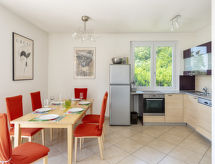 Maison 4 pièces 100 m2 sur 2 niveaux. Aménagement agréable et moderne: à l'étage inférieur: entrée. 2 chambres doubles. 1 chambre avec 2 lits. Douche/WC. À l'étage supérieur: séjour avec table pour les repas et TV (satellite). Sortie sur le balcon. Cuisine ouverte (four, lave-vaisselle, 4 plaques vitrocéramiques, grille-pain, bouilloire électrique, congélateur, cafetière électrique). Douche/WC. Chauffage au gaz. Balcon 45 m2, terrasse couverte. Meubles de terrasse, mobilier de balcon, chaises longues (6). Superbe vue éloignée sur le lac. A disposition: Internet (Connexion WIFI, gratuit). Place de parking (2 Voitures) près de la maison. Veuillez noter: logement non-fumeur. Pas de frais supplémentaires obligatoires à régler sur place, sauf pour la taxe de séjour 017180-CNI-00051- Installations