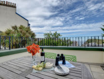 3 pièces cottage au 1er étage. Spacieux et clair, aménagement confortable et de bon goût: séjour ouvert avec TV, écran plat et DVD. 1 chambre double avec 1 lit double. 1 chambre avec 1 lit. Cuisine ouverte (4 plaques de cuisson, four, four micro-ondes, congélateur) avec table pour les repas. Bain/douche/WC. Chauffage. Grand balcon. Mobilier de balcon. Belle vue sur la mer. A disposition: lave-linge. Internet (Connexion WIFI, gratuit). Veuillez noter: maison non-fumeur. 2 animaux/ chiens autorisés.- Caractéristiques de l'hébergement