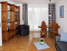 Résidence "Bellevue". À 800 m du centre de Zinnowitz, en bordure de la localité, à 10 km du centre de Wolgast, à 38 km du centre de Greifswald, dans un quartier résidentiel, à 800 m de la mer. Sentier en escalier (7 marches) jusqu'à la maison. Supermarché, plage de sable 800 m, piscine couverte 2 km. Vous pouvez accédez à la maison par la rampe.Interior