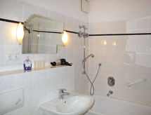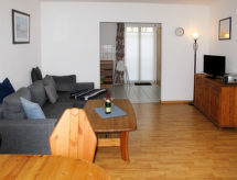 Apt 2 pièces 55 m2, rez-de-chaussée surélevé. Clair, aménagement plaisant: séjour/chambre à coucher avec 1 divan-lit double, table pour les repas, TV (satellite) et chaîne stéréo. Sortie sur la terrasse. 1 chambre double. Cuisine ouverte (4 plaques de cuisson, four, grille-pain, bouilloire électrique, four micro-ondes, cafetière électrique). Bain/WC. Chauffage au fuel. Terrasse partiellement couverte. Meubles de terrasse. A disposition: chaise haute pour enfant, lit bébé. Garage (1 Voiture). Veuillez noter: logement non-fumeur. 1 animal/ chien autorisé. Détecteur de fumée.- Caractéristiques de l'hébergement