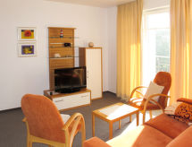 Résidence "Bellevue". À 800 m du centre de Zinnowitz, en bordure de la localité, à 10 km du centre de Wolgast, à 38 km du centre de Greifswald, dans un quartier résidentiel, à 800 m de la mer. Sentier en escalier (7 marches) jusqu'à la maison. Supermarché, plage de sable 800 m, piscine couverte 2 km. Vous pouvez accédez à la maison par la rampe.Interior