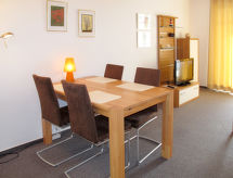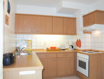 Apt 2 pièces 56 m2 au 1er étage. Aménagement moderne et plaisant: séjour/chambre à coucher avec 1 divan-lit double, table pour les repas, TV (satellite) et radio. Sortie sur le balcon. 1 chambre avec 1 grand-lit (160 cm, longueur 200 cm). Cuisine ouverte (4 plaques de cuisson, four, lave-vaisselle, grille-pain, bouilloire électrique, cafetière électrique) avec coin repas. Bain/WC. Chauffage au fuel. Moquette. Balcon. Mobilier de balcon. A disposition: chaise haute pour enfant, lit bébé. Internet (Connexion WIFI, gratuit). Garage (1 Voiture). Veuillez noter: logement non-fumeur. Détecteur de fumée.- Caractéristiques de l'hébergement