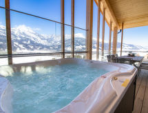 "Planai mit Galerie", apt 3 pièces 95 m2 sur 2 niveaux. Clair, aménagement confortable et luxueux: séjour/salle à manger avec coin repas, TV (satellite) et écran plat. 1 chambre double. 1 chambre double avec douche/WC. Cuisine ouverte (four, lave-vaisselle, 4 plaques vitrocéramiques, cafetière électrique) avec poêle suédois. WC séparé, bains ou douche/WC, Sauna. Balcon. Mobilier de balcon. Très belle vue panoramique sur les montagnes. A disposition: Internet (Connexion WIFI, gratuit). Veuillez noter: logement non-fumeur. Cette location est un exemple de location / d'appartement. Ce chalet possède un porche et un bain à remous extérieur!- Installations