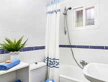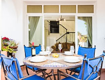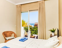 Maison mitoyenne 3 pièces 115 m2 sur 2 niveaux. Aménagement agréable: séjour/salle à manger ouvert avec Télévision numérique. Sortie sur la terrasse. Grande cuisine (four, lave-vaisselle, 3 plaques à induction, grille-pain, bouilloire électrique, four micro-ondes, cafetière électrique). WC séparé. Air-conditionné, chauffage à air chaud. À l'étage supérieur: 1 chambre avec 2 lits (90 cm), bain/WC (privé). Sortie sur la terrasse. 1 chambre avec 1 grand-lit (150 cm), bain/WC (privé). Sortie sur la terrasse. Air-conditionné, chauffage à air chaud. Grande terrasse 45 m2. Meubles de terrasse, chaises longues (4). A disposition: lave-linge, sèche-linge, fer à repasser, chaise haute pour enfant, lit bébé, sèche-cheveux. Internet (Connexion WIFI, gratuit). Place de parking No 5. Veuillez noter: maison non-fumeur. Heure d'arrivée: 16h00-19h00 via accord préalable avec le gestionnaire immobilier (au moins 24h avant l'arrivée) Arrivée tardive 19.00h-22.00h:25 € à payer en espèces à l'arrivée. VTF/MA 24090- Installations