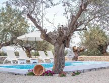 "Bianco Dream", villa 3 pièces 80 m2. Aménagement agréable et moderne: séjour ouvert avec TV (satellite) (écran plat). Sortie sur le jardin, sur la piscine. 1 chambre double avec 1 lit double. Sortie sur le jardin. 1 chambre double avec 2 lits. Sortie sur le jardin. Cuisine ouverte (four, 4 plaques vitrocéramiques, grille-pain, bouilloire électrique, four micro-ondes, cafetière électrique) avec table pour les repas. 2 douches/WC. Air-conditionné. Barbecue. Belle vue sur les alentours. A disposition: lave-linge, coffre-fort, fer à repasser, sèche-cheveux. Internet (Connexion WIFI, gratuit). 1145599- Installations