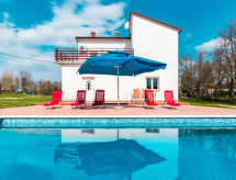 Maison individuelle "Blanka", de 2 étages. Dans le hameau de Trošti, à 5 km du centre de Pazin, à 10 km du centre de Žminj, à 24 km de la mer. A usage privé: terrain 2'200 m2 (clôturé), arbres, champ, piscine rectangulaire (8 x 4 m, profondeur 150 cm, disponibilité saisonnière: 27.Mar. - 05.Nov.). Douche extérieure, terrasse, meubles de jardin, barbecue (balançoire). Infrastructures de la Maison: accès internet, lave-linge. Place de parking (pour 5 voitures) sur le terrain. Magasins 3 km, plage de graviers 24 km.Interior