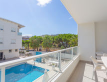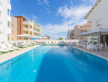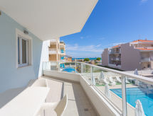 "Blue Bay Resort (RSO180)", apt 2 pièces 35 à 39 m2. Clair, aménagement moderne: séjour/chambre à coucher avec 1 divan-lit double, table pour les repas et TV. Sortie sur le balcon. 1 chambre avec 1 lit double. Sortie sur le balcon. Cuisine ouverte (four, 4 feux, congélateur). Sortie sur le balcon. Douche/WC. Chauffage électrique, air-conditionné. Balcon 15 m2. Mobilier de balcon. A disposition: lave-linge. Internet (Connexion WIFI, gratuit). Maximum 1 animal/ chien de petite taille autorisé.- Caractéristiques de l'hébergement