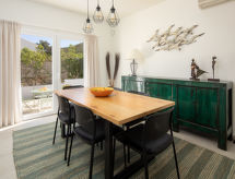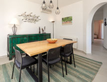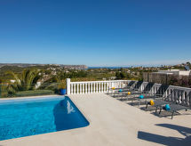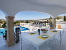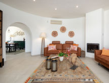 Belle, grande villa luxueuse "Bonheur", de 2 étages. Dans le quartier de Valle del Sol, à 3 km du centre de Jávea - El Arenal, situation tranquille, ensoleillée, à 3 km de la mer, à 3 km de la plage. A usage privé: grand, beau jardin entretenu avec pelouse et arbres, piscine rectangulaire, protégée, cloturée (10 x 5 m, profondeur 90 - 250 cm, disponibilité saisonnière: 01.Jan. - 31.Dec.) avec marches intérieures. Jardinet, pergola, meubles de jardin, barbecue, place de parking (pour 2 voitures) sur le terrain. Magasins 1.2 km, restaurant 800 m, bar 1.2 km, plage de sable "El Arenal" 3 km, plage de galets "Portitxol" 4 km. Terrain de golf 4 km, ecole de surf 3 km, ecole de voile 3 km, tennis 3 km. Veuillez noter: voiture recommandée. Le propriétaire n'accepte pas les groupes de jeunes.Interior