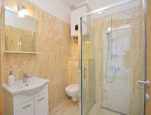 Okrug Gornji (Čiovo) à 6 km de Trogir: Immeuble "Borka". À 2 km du centre d'Okrug Gornji, situation tranquille, ensoleillée, à 30 m de la mer, à 30 m de la plage, dans une impasse. En commun: terrain 250 m2 (clôturé). Terrasse (50 m2), meubles de jardin, barbecue. Infrastructures de la Maison: accès internet. Place de parking près de la maison sur le terrain. Magasins 850 m, restaurant 1 km, plage de rochers 30 m. Terrain de golf 35 km, tennis 2.5 km. Veuillez noter: Aéroport 10 km de la maison.Interior