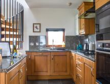 3 pièces cottage sur 2 niveaux. Spacieux, aménagement agréable et de style: grand séjour/salle à manger ouvert avec table pour les repas et TV (satellite) (écran plat), lecteur CD, DVD et poêle à bois. Sortie sur le jardin. 1 chambre double avec 1 lit double, bain/douche/WC et TV. Cuisine ouverte (4 plaques de cuisson, four, lave-vaisselle, four micro-ondes, congélateur). Douche/WC. À l'étage supérieur: entresol. Jardin. Barbecue. Superbe vue sur les alentours. A disposition: lave-linge, sèche-linge, téléphone, fer à repasser. Internet (Connexion WIFI, gratuit). Ordinateur (inclus). Place de parking. Veuillez noter: maison non-fumeur. Il y a un PC avec imprimante, des livres, des cartes, des jeux et un téléphone à disposition des hôtes.- Caractéristiques de l'hébergement