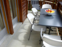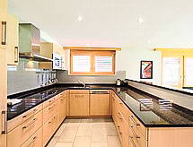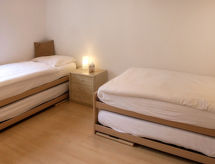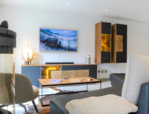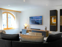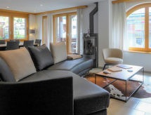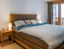 Apt 4 pièces 120 m2 au 1er étage, situation sud. Clair, partiellement rénové en 2020, aménagement très moderne et luxueux: 1 chambre double avec 1 lit double (1 x 180 cm, longueur 200 cm). 2 chambres, chaque chambre avec: 2 lits (90 cm, longueur 200 cm). Séjour/salle à manger ouvert avec poêle suédois, table pour les repas, TV et radio. Sortie sur le balcon. Cuisine ouverte (four, lave-vaisselle, 4 plaques vitrocéramiques, grille-pain, bouilloire électrique, congélateur, cafetière électrique, appareil à raclette, service à fondue (fondue au fromage)) avec bar. Bain/WC, douche/WC. Chauffage par le sol. Balcon 10 m2. Mobilier de balcon. Belle vue sur les montagnes. A disposition: sèche-cheveux. Internet (Connexion WIFI, gratuit). Veuillez noter: logement non-fumeur.- Caractéristiques de l'hébergement