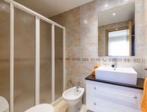 "Cala Blanca", apt 3 pièces 60 m2 au 3ème étage. Clair, aménagement fonctionnel et confortable: séjour/salle à manger avec 1 divan-lit double, table pour les repas, Télévision numérique, écran plat et air-conditionné. Sortie sur la terrasse. 1 chambre avec 1 grand-lit (135 cm, longueur 190 cm). 1 chambre avec 2 lits (90 cm, longueur 190 cm). Cuisine (four, lave-vaisselle, 4 plaques vitrocéramiques, grille-pain, four micro-ondes, congélateur, cafetière électrique) avec passe-plat. Douche/bidet/WC. Chauffage électrique. Terrasse 15 m2. Meubles de terrasse. Vue sur la mer. A disposition: lave-linge, fer à repasser, sèche-cheveux. Internet (Connexion WIFI, gratuit). Place de parking No 28 (couvert). Adapté(e) aux familles. VT-40486-CS- Installations
