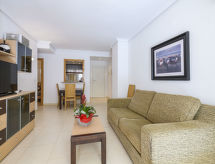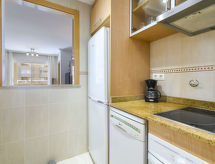 Marina d'Or: Petite résidence confortable "Cala Blanca II". Situation ensoleillée, à 20 m de la mer, juste au bord de la plage, route à traverser. En commun: jardin, piscine (10 x 20 m, profondeur 70 - 230 cm, disponibilité saisonnière: 01.Jan. - 31.Dec.). Bassin pour les enfants, douche extérieure. Infrastructures de la Maison: ascenseur. Place de parking (couvert), parking public possible dans la rue. Magasin d'alimentation 300 m, supermarché 700 m, restaurant, bar, café 500 m. Groupes de jeunes sur demande seulement. Environnement très sensible au bruit. Silence et bonne tenue exigés.Interior