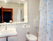 "Caminetto", apt 2 pièces 60 m2, rez-de-chaussée surélevé. Spacieux, rénové, aménagement très de bon goût: séjour/salle à manger avec cheminée et TV (satellite). Alcôve avec 1 divan-lit double. 1 chambre avec 2 lits. Coin cuisine (4 plaques de cuisson, four). Douche/WC. Jardinet. Meubles de terrasse. 1 animal/ chien autorisé.- Installations