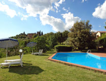 Beau domaine historique "Il Giardino della Pineta", du 18ème siècle, renové, environné par les prés, champs et vignobles. 2 maisons dans la résidence. Dans le hameau de Varna, à 6 km du centre de Gambassi, situation isolée, ensoleillée sur une colline, dans une rue. En commun: terrain (clôturé), beau jardin entretenu avec pelouse, piscine (6 x 16 m, profondeur 100 - 250 cm, disponibilité saisonnière: 01.Mai. - 25.Sep.). Douche extérieure, terrasse, meubles de jardin, barbecue, place de parking. Magasins 500 m, supermarché 6 km, restaurant 6 km, café 6 km, arrêt du bus 300 m, gare ferroviaire "Certaldo" 8 km, piscine 7 km, piscine couverte 7 km. Terrain de golf 20 km, tennis 7 km, centre équestre 7 km. Attractions à proximité: Firenze 45 km, San Gimignano 12 km, Siena 45 km. Toutes les maisons/appartements sont aménagés individuellement.Interior