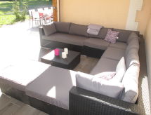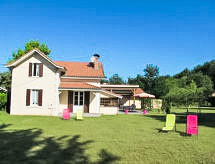 Maison mitoyenne 5 pièces 150 m2 sur 2 niveaux. Aménagement fonctionnel et rustique: séjour/salle à manger avec TV (satellite) et chaînes de TV internationales (écran plat), chaîne stéréo. Sortie sur le jardin, sur la terrasse. 1 chambre avec 2 lits (90 cm). 1 chambre avec 1 grand-lit (1 x 140 cm). Cuisine (four, lave-vaisselle, 4 plaques à induction, four micro-ondes, congélateur). Sortie sur le jardin. Douche, WC séparé, double vasque. À l'étage supérieur: galerie avec 1 grand-lit (1 x 140 cm). 1 chambre, mansardée avec 1 grand-lit (1 x 140 cm). 1 chambre, mansardée avec 2 lits (90 cm). Douche/WC. Terrasse 70 m2 partiellement couverte. Meubles de terrasse, barbecue, chaises longues (4). A disposition: lave-linge, sèche-cheveux. Internet (Connexion WIFI, gratuit). Veuillez noter: maximum 1 animal/ chien autorisé. Détecteur de fumée. La maison est mitoyenne avec une autre qui est aussi louée.- Installations