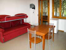 "Campeggio del Forte" studio 25 à 28 m2. Aménagement simple: séjour/chambre à coucher avec 1 divan-lit double, table pour les repas et TV (satellite). Sortie sur le balcon. 1 chambre ouverte avec 1 grand-lit (160 cm). Cuisine ouverte (4 feux, cafetière électrique). Douche/WC. Pas de chauffage. Balcon. Mobilier de balcon. A disposition: chaise haute pour enfant, lit bébé.- Installations