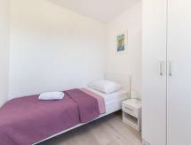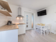 3 pièces mobil home 36 m2. Séjour/salle à manger avec 1 divan-lit double (160 cm, longueur 200 cm), TV (satellite) (écran plat), air-conditionné. 1 chambre avec 1 grand-lit (160 cm, longueur 200 cm). 1 chambre avec 2 lits (90 cm, longueur 200 cm). Cuisine ouverte (2 plaques vitrocéramique, congélateur). Douche/WC. Chauffage à air chaud. Terrasse 8 m2, couverte. Meubles de terrasse. A disposition: Internet (Connexion WIFI, gratuit). Veuillez noter: maison non-fumeur.- Installations