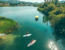 Beau lotissement de vacances "Camping Homes Grot", année de construction 2019. À 4 km du centre de Gradac, à 9 km du centre de Ploče, situation tranquille, ensoleillée, à 4 km de la mer, à 4 km de la plage. En commun: terrain 5'000 m2, piscine (9 x 5 m, 47 m2, profondeur 150 cm, disponibilité saisonnière: 15.Avr. - 30.Sep.). Infrastructures de la résidence: réception, restaurant, accès internet. Place de parking sur le terrain. Magasins 4 km, restaurant 4 km, plage de graviers 4 km. Les lacs connus sont facilement accessibles: Baćinska jezera 7 km.Interior