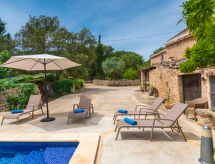 À 2 km de Costitx: Belle ancienne ferme rustique, historique "Can Mora", de 2 étages, rénovée, environnée par les arbres. En-dehors de la localité, à 2.2 km du centre de Costitx, situation tranquille, ensoleillée, à 28 km de la mer, à 28 km de la plage, dans la forêt. A usage privé: terrain à l'état naturel (clôturé) avec plantes et arbres, jardin naturel, piscine rectangulaire (8 x 4 m, disponibilité saisonnière: 01.Jan. - 31.Dec.). Jardinet, meubles de jardin, barbecue. Infrastructures de la Maison: accès internet, Connexion WIFI, air-conditionné, lave-linge. Place de parking près de la maison sur le terrain. Supermarché 2.3 km, bar 2.4 km, boulangerie 2.3 km, centre à 27 minutes à pieds, arrêt du bus 2.5 km, gare ferroviaire 6 km, plage de sable 28 km, plage de rochers 30 km. Port plaisance 29 km, terrain de golf 19 km, tennis 2.5 km, chemins de randonnées pédestres depuis la maison 200 m, piste cyclable 250 m. Attractions à proximité: Ruta Arqueológica, Son Corró, yacimiento arqueológico, Observatorio Astronómico de Mallorca. Veuillez noter: voiture recommandée. Adapté(e) aux familles, indiqué pour séniors. Bien convenant à 5 adultes groupes de jeunes sur demande seulement. Animaux dans le voisinage. Aéroport 30 km de la maison.Interior