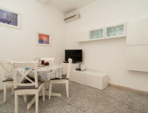 Apt 3 pièces 70 m2 au 1er étage. Partiellement rénové en 2017, aménagement simple et fonctionnel: séjour/salle à manger avec table pour les repas et TV (satellite) (écran plat), air-conditionné et chauffage à air chaud. 1 chambre double avec air-conditionné et chauffage à air chaud. Sortie sur le balcon. 1 chambre avec 1 x 2 lits superposés, air-conditionné et chauffage à air chaud. Sortie sur le balcon. Petite cuisine (4 plaques de cuisson, four). Douche/bidet/WC. Air-conditionné, chauffage à air chaud (en sus). Possibilité de chauffage uniquement du 01.11. au 31.03. Terrasse 60 m2, situation sud et situation est. Meubles de terrasse, barbecue, chaises longues (2). Très belle vue panoramique sur la mer, les alentours et la localité. A disposition: lave-linge, fer à repasser, sèche-cheveux. Internet (Connexion WIFI, gratuit). Place de parking, garage, hauteur 185 cm. Veuillez noter: adapté(e) aux familles. Réfrigérateur sans compartiment congélateur. Pas de frais supplémentaires obligatoires à régler sur place, sauf pour la taxe de séjour- Installations