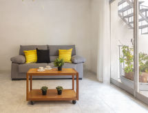 Casa Carmen: Belle maison moderne, confortable "Carmen". Dans la localité, à 900 m du centre, situation ensoleillée, à 100 m de la mer, à 100 m de la plage, orientée sud. A usage privé: terrain à l'état naturel, parking public possible dans la rue. Magasin d'alimentation 300 m, supermarché 500 m, restaurant 100 m, gare ferroviaire "l'Ampolla" 1 km, plage de sable 300 m. Attractions à proximité: Portaventura 65 km, Parque natural del Delta del Ebro 9 km, Golf Pitch & Putt 4 km.Interior