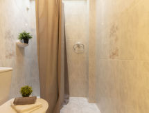 "Carmen", maison studio 82 m2. Spacieux et clair, aménagement simple et fonctionnel: séjour/salle à manger avec table pour les repas, TV, air-conditionné et chauffage à air chaud. Sortie sur le balcon. 1 chambre avec 1 lit gigogne (1 pers. 2 x 80 cm). 1 chambre double avec 2 lits (90 cm). 1 chambre double avec 1 lit double (135 cm), bain/WC. Séjour avec air-conditionné. Cuisine (4 plaques de cuisson, four, four micro-ondes, congélateur). Sortie sur la terrasse. Douche/WC. Meubles de terrasse, barbecue (portable). Latérale vue éloignée sur la mer et le jardin. A disposition: lave-linge. Veuillez noter: adapté(e) aux familles. 1 animal/ chien autorisé. Sans ascenseur. HUTTE046444- Caractéristiques de l'hébergement