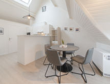 Belle maison mitoyenne "Carnac", de 4 étages. Au centre de De Haan, à 700 m de la mer, à 700 m de la plage. Parking public couvert à 100 m. Supermarché 100 m, restaurant 5 m, bar 200 m, boulangerie 50 m, location de bicyclettes 300 m, tramway "De Haan aan Zee" 50 m, parc "La Potinière" 200 m. Terrain de golf (18 trous) 2 km, ecole de surf 1 km, ecole de voile 1 km, tennis, golf miniature 200 m. Attractions à proximité: Oostende 10 km, Sea life Blankenberge 18 km, Brugge 20 km.Interior