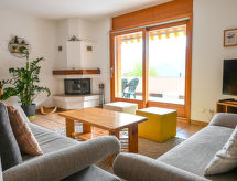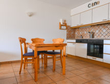 "Caroubier 2", apt 2 pièces 60 m2 au 1er étage, situation sud. Aménagement confortable et moderne: séjour/salle à manger avec 1 lit armoire (90 cm, longueur 190 cm), cheminée, TV (câblée), écran plat et DVD. Sortie sur le balcon. 1 chambre avec 1 grand-lit. Sortie sur le balcon. Coin cuisine (four, lave-vaisselle). Bain/WC. Balcon 28 m2. Meubles de terrasse, barbecue, chaises longues. Belle vue sur les montagnes. A disposition: Internet (Connexion WIFI, gratuit). Garage No 2. Veuillez noter: logement non-fumeur. Maximum 1 animal/ chien autorisé.- Installations