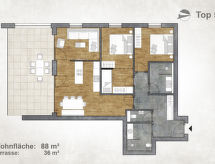 Le centre de bien-être Alpin - Vital - Wellnesscenter Samsunn se situe à un endroit très ensoleillé en Autriche, juste à côté de votre maison et offre aux invités l'opportunité d'accéder tous les jours gratuitement pendant 3 heures à ses services. L'espace bien-être est une zone nudiste, qui n'est donc accessible qu'à partir de 14 ans. Le centre de bien-être est agréé pour 100 personnes au maximum. Ce centre de bien-être sera fermé pendant deux semaines fin avril et début novembre pour des travaux d'entretien. Résidence moderne, confortable "Carpe Solem by Alps Resorts", 1'120 m au dessus du niveau de la mer, année de construction 2019. Au centre de Mariapfarr, excellente situation: centrale mais tranquille. En commun: 2 piscines rectangulaire chauffée (disponibilité saisonnière: 01.Jun. - 01.Sep.). Douche/WC dans l'espace piscine, bassin pour les enfants, toboggan. Infrastructures de la résidence: restaurant, café, Connexion WIFI, sauna, massage (en sus). Bains de vapeur (hammam), bain à remous , sauna à infra-rouge, salle de relaxation, possibilité d'achats, ascenseur, local pour les skis, chauffage central, appareil de séchage de chaussures à ski. En hiver, merci de prévoir des chaînes. Place de parking (nombre de places limité), garage en commun (en sus). Supermarché 200 m, restaurant, bar 100 m, café 200 m, arrêt du bus 160 m, piscine couverte 8 km, lac Prebersee 15 km. Terrain de golf (18 trous) 14 km, centre équestre 1 km, chemins de randonnées pédestres depuis la maison 300 m, piste cyclable 500 m, télésiège 7 km, remontées mécaniques 7.5 km, location de ski 1 km. Arrêt du ski-bus 160 m, école de ski 1.6 km. Attractions à proximité: Stille Nacht Museum Mariapfarr 300 m, Outdoorparc Lungau 2.5 km, Burgerlebnis Mauterndorf 7 km, Murtalbahn und Taurachbahn. Veuillez noter: ski-bus gratuit. Service de navette gratuite desservant le domaine skiable Fanningberg, Grosseck-Speiereck et Obertauern und Katschberg - Aineck. La photo n´est qu´un exemple. Toutes les maisons/appartements sont aménagés individuellement.Interior