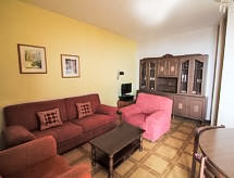 Apt 4 pièces 80 m2 au 1er étage. Aménagement simple et fonctionnel: séjour/salle à manger avec TV (satellite). Sortie sur le balcon. 2 chambres doubles. 1 petite chambre avec 1 lit. Cuisine (4 plaques de cuisson, bouilloire électrique, four micro-ondes, congélateur, cafetière électrique). Bain/bidet/WC. Chauffage au gaz (en sus). Possibilité de chauffage uniquement du 01.10. au 30.04. Balcon 15 m2. Mobilier de balcon. Belle vue panoramique sur le lac et les montagnes. Maximum 1 animal/ chien autorisé. CIR:017185-CNI-00083- Installations