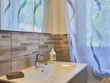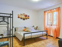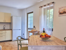 "Veri", apt 3 pièces 60 m2, rez-de-chaussée surélevé. Aménagement confortable: séjour/salle à manger avec table pour les repas et TV (satellite). Sortie sur le jardin, sur le balcon. 1 chambre avec 1 x 2 lits superposés. 1 chambre double. Coin cuisine (four, lave-vaisselle, 4 plaques à induction, grille-pain, cafetière électrique). Douche/WC. Chauffage au gaz. Petit balcon, jardinet. Meubles de terrasse, barbecue, chaises longues (2). A disposition: chaise haute pour enfant, lit bébé jusqu'à 2 ans. Internet (Connexion WIFI, gratuit). Place de parking (2 Voitures). Veuillez noter: logement non-fumeur. Maximum 1 animal/ chien autorisé. Entrée privée.- Installations