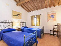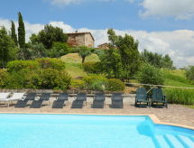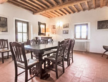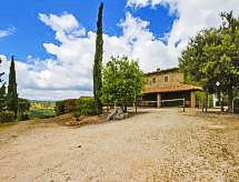 À 4 km de Baccinello: La ferme Podere Santa Croce se trouve dans le Maremma, au milieu de collines (40 ha) avec vue sur la vallée de Ombrone. Situation très calme avec vue panoramique (360°) sur les environs (vignes, forêts) et jusqu'à la mer (25 km). Excursions vers Argentario, le parc naturel Uccellina, vers la mer: Castiglione della Pescaia ou encore vers les villes du sud de la Toscane. Gastronomie de renommée, vin et huile d'olives. Domaine agricole ancien, rustique "Podere Santa Croce", renové. À 15 km du centre de Campagnatico, à 17 km du centre de Grosseto, à 20 km du centre de Scansano, situation isolée, ensoleillée, dans la verdure. En commun: terrain 40 ha, jardin propice à la détente, piscine (6 x 12 m, profondeur 110 - 160 cm, disponibilité saisonnière: 15.Mai. - 19.Sep.). Douche extérieure, tonnelle, meubles de jardin. A usage privé: barbecue. Accès en voiture (1 km chemin non goudronné). Place de parking sur le terrain. Magasins 15 km, magasin d'alimentation 4 km, supermarché 20 km, restaurant 4 km, bar 4 km, plage de sable 25 km. Attractions à proximité: Parco naturale dell'Uccellina 25 km, Terme di Saturnia 60 km, Siena 60 km. Vente locale de produits de la ferme.Interior