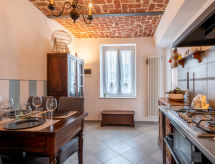 Maison mitoyenne accueillante "Casa Margherita", année de construction 1900, rénovée en 2021, environnée par les prés et champs. En bordure de la localité, à 3 km du centre d'Asti, situation centrale, ensoleillée, orientée ouest. A usage privé: terrain 2'000 m2 (clôturé), beau jardin avec pelouse et plantes. Tonnelle (15 m2), terrasse, meubles de jardin, barbecue, place de parking près de la maison sur le terrain. Supermarché 1 km, centre commercial 1 km, restaurant 3 km. Le propriétaire habite dans une partie de maison indépendante.Interior