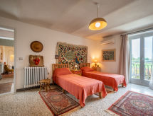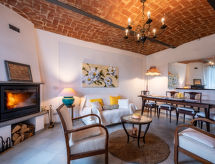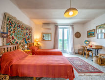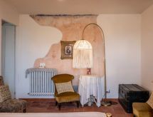 "Margherita", maison mitoyenne 3 pièces 120 m2 sur 2 niveaux. Aménagement très agréable et plaisant: séjour/salle à manger avec cheminée et TV. Sortie sur la terrasse. Cuisine (four, 4 feux, grille-pain, bouilloire électrique, four micro-ondes, congélateur, cafetière électrique). WC séparé. À l'étage supérieur: 1 chambre avec 1 lit double. Sortie sur le balcon. 1 chambre avec 2 lits. Sortie sur le balcon. Bain/douche/bidet/WC. Chauffage, air-conditionné. Possibilité de chauffage uniquement du 01.10. au 15.04. Sol en pierres naturelles. A disposition: lave-linge, lit bébé jusqu'à 2 ans. Internet (Connexion WIFI, gratuit). Pas de frais supplémentaires obligatoires à régler sur place, sauf pour la taxe de séjour 00500500122- Activités à proximité