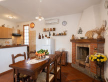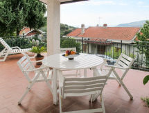 "Casa Paolo", maison 3 pièces 80 m2, à l'étage supérieur. Partiellement rénovée en 2017, aménagement rustique et plaisant: grand séjour/salle à manger avec 1 divan-lit double et cheminée (uniquement à titre de décoration), table pour les repas, TV (satellite) et DVD. 1 chambre avec 1 grand-lit (160 cm). 1 chambre avec 1 lit (80 cm), 1 lit gigogne (2 x 80 cm). Sortie sur la terrasse. Petite cuisine ouverte (mini-four, four, lave-vaisselle, 4 feux, grille-pain, bouilloire électrique, congélateur, cafetière électrique) avec bar. Douche/WC. Chauffage, air-conditionné. Terrasse 50 m2, couverte. Meubles de terrasse, barbecue, chaises longues (2), réduit. Belle vue éloignée sur les alentours, la localité et l'océan. A disposition: lave-linge, fer à repasser, lit bébé. Internet (Connexion WIFI). Veuillez noter: maximum 2 animaux/ chiens autorisés. Entrée privée. CITRA:008028-LT-0009- Installations