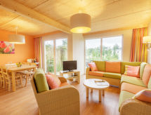 Complexe de vacances accueillant pour les enfants "Center Parcs Park Bostalsee". En-dehors de la localité, à 10 km du centre de Nohfelden, sur un versant, juste au bord du lac, juste au bord de la plage, dans la verdure, dans la forêt. En commun: piscine couverte chauffée. Douche/WC dans l'espace piscine, bassin pour les enfants, toboggan, bain à remous , tennis (en sus), basket, terrain de volley-ball, beach volley, espace de jeux pour les enfants. Infrastructures de la résidence: réception, restaurant, bar, salle pour petits déjeuners, sauna (en sus). Massage (en sus). Spa (en sus) ping-pong, billard, trampoline, possibilité d'achats, chauffage central, location de bicyclettes. A disposition: bowling (en sus). Service boulangerie et Petit-déjeuner possible (en sus). Places de parking centrales. Gare ferroviaire "Türkismühle" 7 km. Terrain de golf (9 trous) 8 km. Attractions à proximité: Nahequelle mit Wildfreigehege, Sternenwarte Peterberg, Strasse der Skulpturen. Veuillez noter: complexe de vacances sans voiture. Le propriétaire n'accepte pas les groupes de jeunes. Possibilité de pêche (autorisation nécessaire) (en sus). Déchargement et chargement des bagages à la location de vacances. La photo ne montre qu’un exemple de location de vacances. Toutes les maisons/appartements sont aménagés individuellement.Interior
