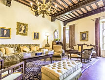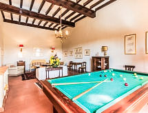 Villa "Ofelia", 250 m au dessus du niveau de la mer, du 14ème siècle. Au centre de Cevoli, à 7 km du centre de Casciana Terme, à 14 km du centre de Chianni, à 32 km du centre de Pisa, situation tranquille, ensoleillée, à 45 km de la mer. A usage privé: jardin 1 ha (clôturé), piscine (8 x 6 m, profondeur 120 - 180 cm, disponibilité saisonnière: 05.Mai. - 29.Sep.). Douche extérieure, meubles de jardin, barbecue. Infrastructures de la Maison: billard, ascenseur, chauffage payable localement, possibilité de chauffage uniquement du 01.11. au 07.04.. Cuisinier possible (en sus). Place de parking sur le terrain. Supermarché 4 km, restaurant 1.5 km, plage de sable "Marina di Pisa" 45 km, centre thermal "Casciana Terme" 7 km. Terrain de golf (18 trous) 25 km, tennis 5 km. Attractions à proximité: Lajatico 20 km, Orciatico 29 km, Volterra 38 km, San Gimignano 48 km, Certaldo 49 km, Firenze 70 km. La propriété se compose de deux unités, la villa et l'annexe qui reste à l'usage des propriétaires. , Dans le cas de séjours de sept jours, un ménage de trois heures en milieu de semaine est inclus dans le prix (réaménagement du lit et de la salle de bain et réaménagement du rez-de-chaussée), pour les séjours de deux semaines ou plus, un changement hebdomadaire des draps et des serviettes est fourni.Interior