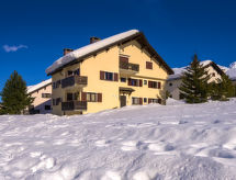"Chesa Mulin", apt 4 pièces 70 m2 au 1er étage. Partiellement rénové en 2018, aménagement confortable: séjour/salle à manger avec cheminée, TV et radio. Sortie sur le balcon, orientée nord-ouest. 1 petite chambre avec 1 x 2 lits superposés (90 cm, longueur 200 cm). 1 chambre avec 2 lits (90 cm, longueur 190 cm). 1 petite chambre avec 2 lits (90 cm, longueur 190 cm). Cuisine (four, lave-vaisselle, 4 plaques à induction, grille-pain, bouilloire électrique, four micro-ondes, congélateur, service à fondue (fondue au fromage)) avec passe-plat. Bain/WC, douche/WC. Petit balcon. Vue sur les montagnes et la localité. A disposition: sèche-cheveux. Internet (Connexion WIFI, gratuit). Garage, hauteur 180 cm, largeur 220 cm. Veuillez noter: adapté(e) aux familles. Logement non-fumeur. Maximum 1 animal/ chien autorisé.- Caractéristiques de l'hébergement
