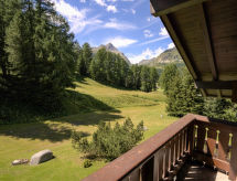 "Chesa Seglias", apt 3 pièces 100 m2 au 2ème étage. Partiellement rénové en 2013, aménagement confortable et plaisant: séjour/salle à manger ouvert avec cheminée et TV (écran plat). Sortie sur le balcon. 1 chambre avec 1 grand-lit (1 x 155 cm, longueur 185 cm). 1 grande chambre double avec 1 lit double (1 x 160 cm, longueur 190 cm). Cuisine ouverte (four, lave-vaisselle, 4 plaques vitrocéramiques, grille-pain, bouilloire électrique, cafetière électrique, Capsules pour machine à café (Nespresso) (NON INCLUSES), service à fondue (fondue chinoise, fondue au fromage)). 2 douches/bidet/WC. À l'étage supérieur: petite galerie. Sol en bois. Petit balcon 5 m2. Mobilier de balcon. Belle vue sur les montagnes et les alentours. A disposition: sèche-cheveux. Internet (Connexion WIFI, gratuit). Garage No 6 (Sella Seglias), hauteur 205 cm, largeur 240 cm. Veuillez noter: logement non-fumeur maison non-fumeur, parking pour 1 petite voiture. Maximum 2 animaux/ chiens autorisés. Sans ascenseur.- Installations