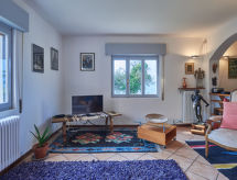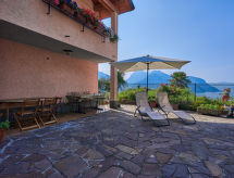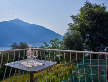 Apt 3 pièces 85 m2, au rez-de-chaussée. Clair, aménagement agréable: séjour avec TV. 1 chambre avec 1 grand-lit (160 cm). Sortie sur le balcon. 1 chambre avec 1 x 2 lits superposés. Cuisine ouverte (four, lave-vaisselle, 4 feux, grille-pain, bouilloire électrique, four micro-ondes, congélateur, cafetière électrique) avec table pour les repas. Bain/WC. Chauffage au gaz. Sol en pierres naturelles. Balcon, terrasse partiellement couverte. Meubles de terrasse, mobilier de balcon, barbecue (portable), chaises longues (4). Superbe vue panoramique sur le lac et les montagnes. A disposition: lit bébé jusqu'à 2 ans. Internet (Connexion WIFI, gratuit). Veuillez noter: logement non-fumeur. Maximum 1 animal/ chien autorisé. Entrée privée. CIR:013248-CNI-00054- Installations